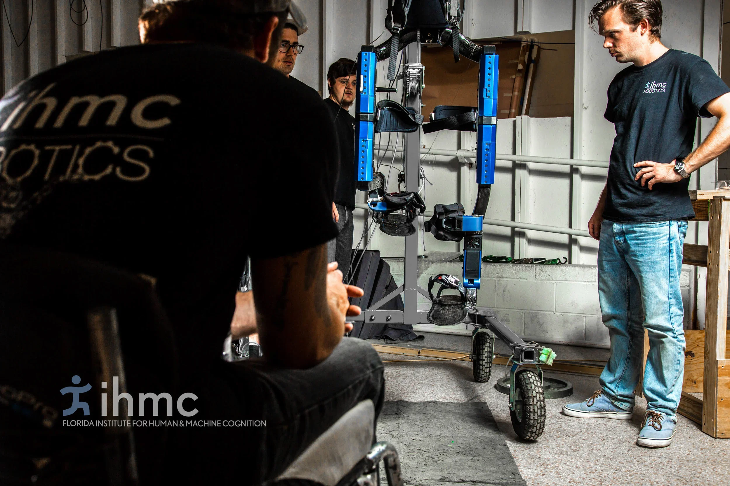 IHMC Robotics is recognized internationally for our work on legged robots. One of our recent highlights in placing second in the DARPA Robotics Challenge Finals in 2015. The IHMC Robotics team is made up of engineers and scientists who are passionate about this event and devoted to developing assistive technologies. We have been developing exoskeletons and wearable robotic devices for the past 10 years with two of our previous powered exoskeletons