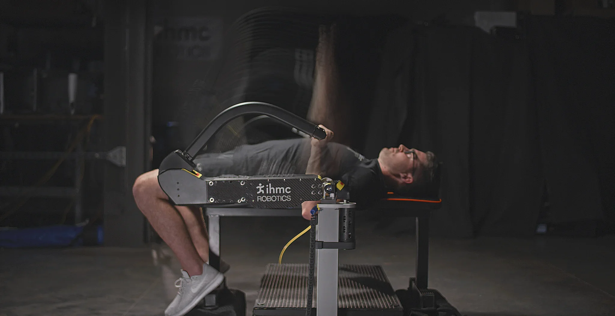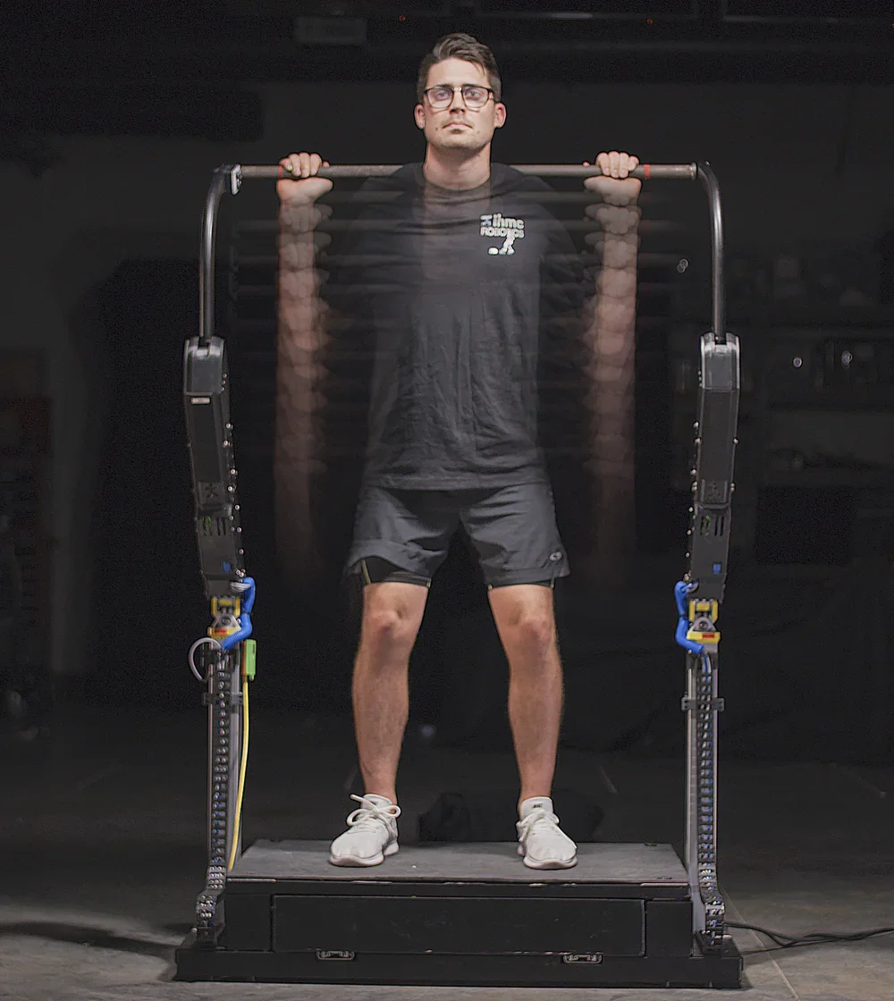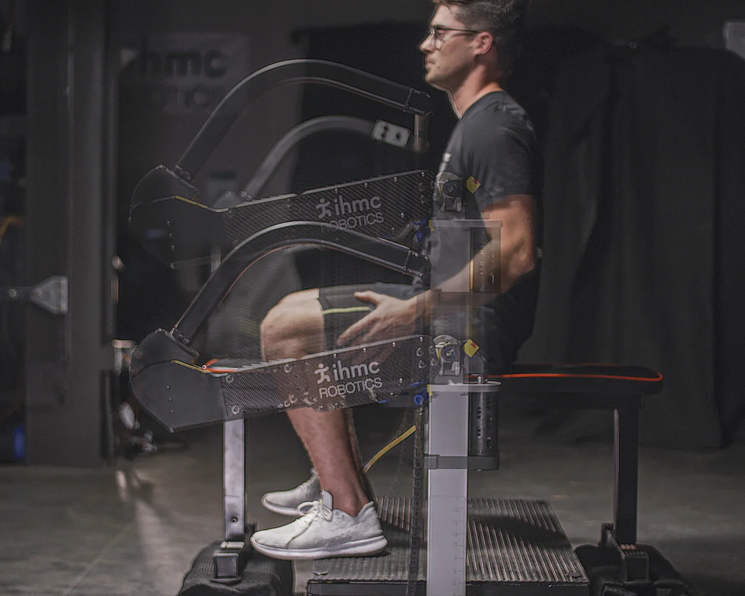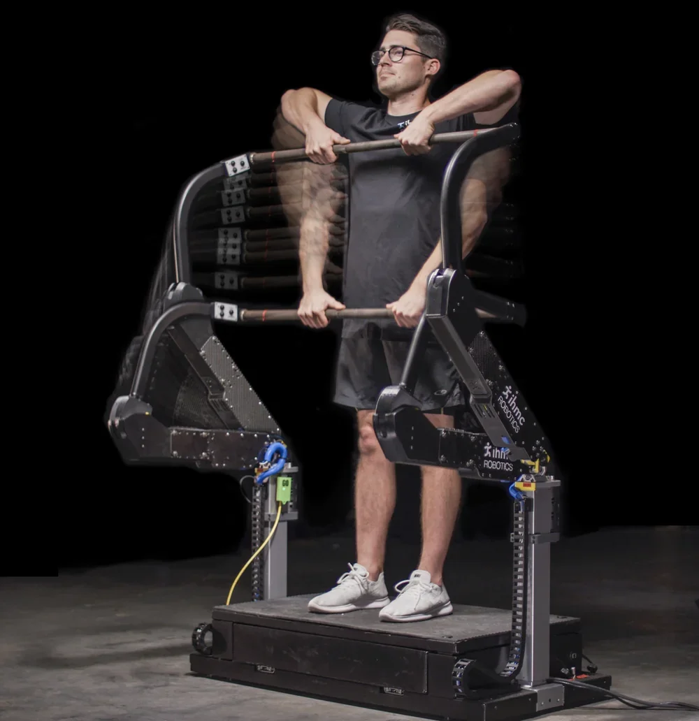 In operation, the actuators try to fold up, or collapse, putting a compressive load between the user's feet and torso. This force is similar to carrying a heavy backpack. The user then bends and extends his or her knees, replicating a weightlifting squat exercise. The applied load is precisely controller by a computer, and can be programmed to simulate gravitation loads or any desired load prescription, such as free-weight squat exercise. It is even possible to perform eccentric muscle exercises, or negatives, without the need for a spotter. Because the hip joints, as well as the spine and long leg bones, are in the applied load path, there is the potential to stimulate bone growth, countering the typical bone loss when astronauts return from extended duration space travel.